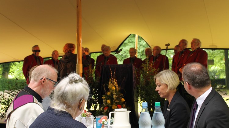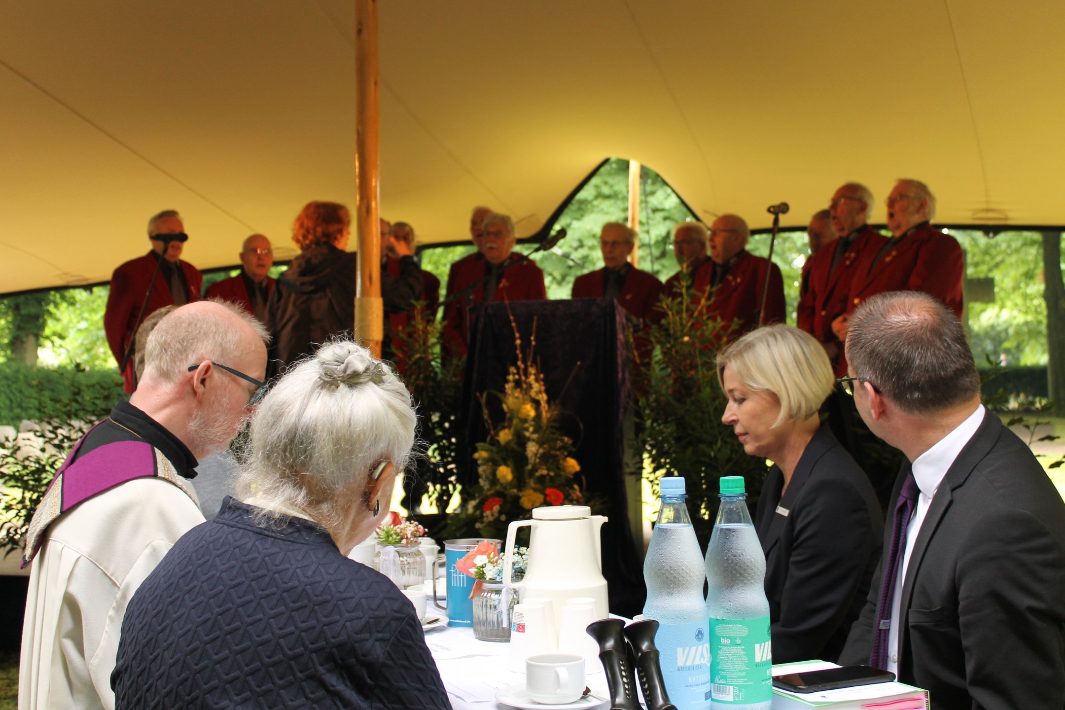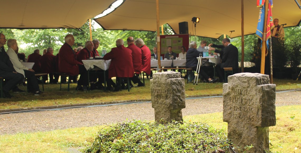 Sie heißen Gerhard Schmalfeld, Anna Wotoszyn und Heinz Sengelhoff und haben eines gemeinsam: ihre Ruhestätte ist die Kriegsgräberstätte in Edewecht. Sie gehören zu den 433 Toten, die auf dem nach dem Zweiten Weltkrieg angelegten Friedhof beerdigt wurden. Die Einweihung der 1948/49 gebauten Anlage fand am Vorabend der Gründung der Bundesrepublik statt und nun – 75 Jahre später – erinnerte ein Festakt an dieses Ereignis sowie an die vielen Schicksale der Bestatteten. Die Edewechter Kirchengemeinden, Vereine, Verbände, Schulen sowie die Gemeinde, der Landkreis und der Volksbund Deutsche Kriegsgräberfürsorge organisierten die Veranstaltung.