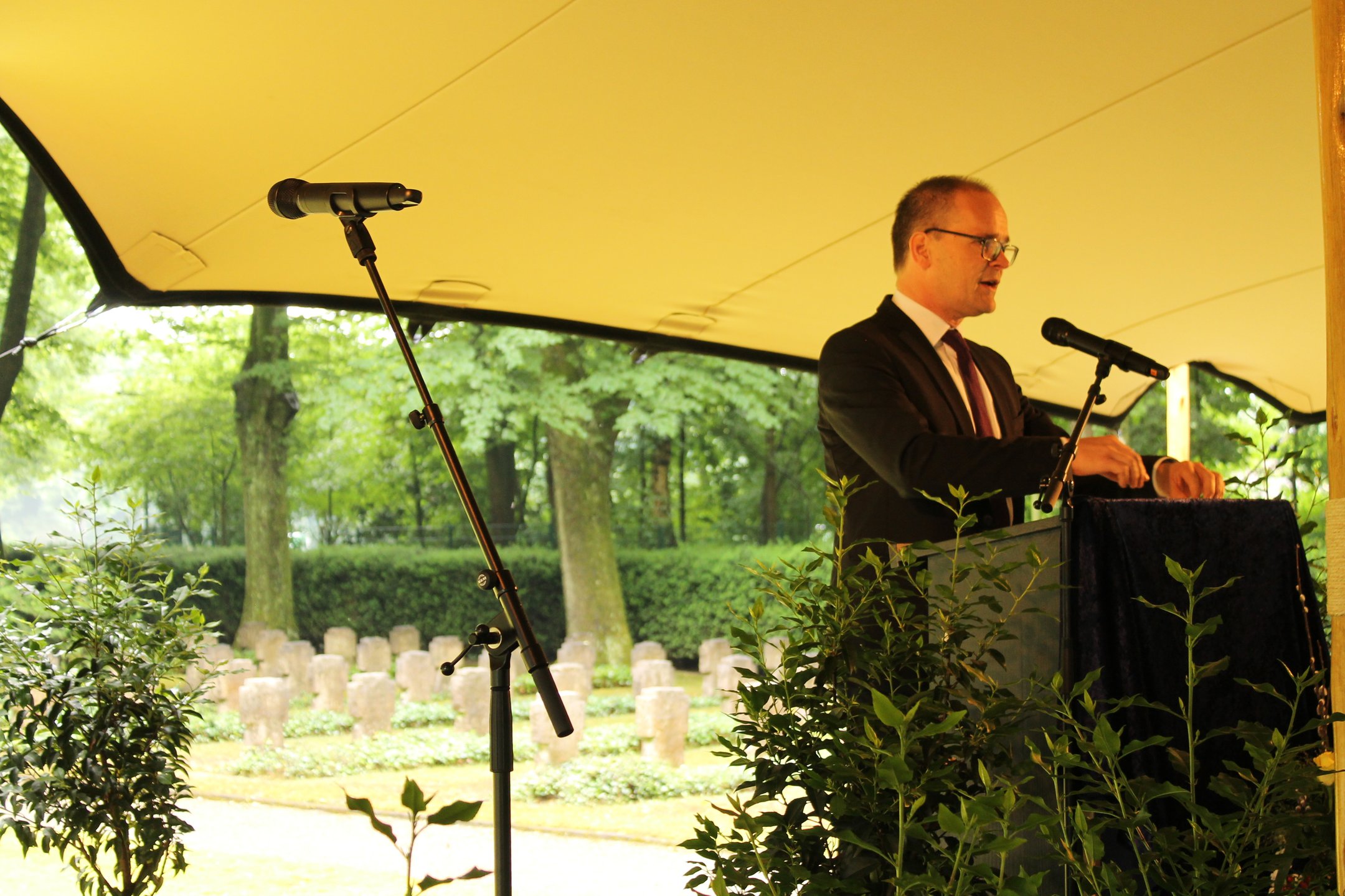 Die Beschäftigung mit den Lebens- und Leidenswegen der Toten, um Lehren für das Hier und Jetzt zu ziehen – hierzu rief unter anderem die Ammerländer Landrätin Karin Harms auf. „Die Reihen von Grabkreuzen zeigen deutlich, in welche Abgründe Krieg, Rassismus und Nationalismus führen.“ Zudem erinnerte Harms daran, dass zusätzlich zu den Toten, die nun auf der Kriegsgräberstätte ruhen, auch 300 alliierte Soldaten und 109 Zivilisten aus Edewecht im Zuge der Kämpfe starben.