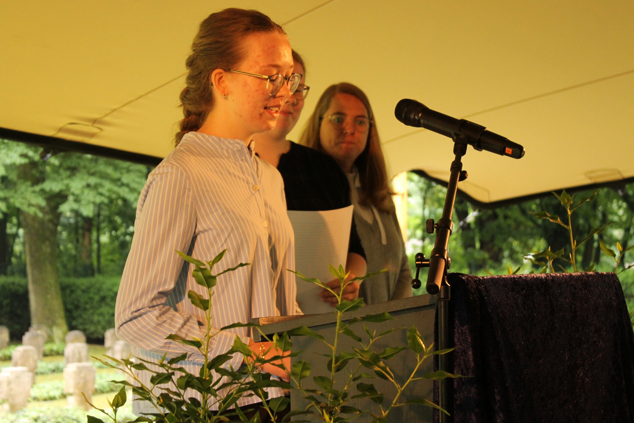 Die Schicksale der Soldaten und Zwangsarbeiter, die auf der Kriegsgräberstätte beerdigt sind, standen auch im Mittelpunkt der Beiträge, die Schülerinnen präsentierten. Chantal Jacobi von der Astrid Lindgren-Schule stellte gemeinsam mit Lehrer Sven Graf drei Biografien vor, während Luisa Kröger, Emma Freese und Lehrerin Katrin Konen-Witzel von der Edewechter Oberschule ein mögliches Schicksal eines jungen Soldaten aus drei verschiedenen Perspektiven schilderten.