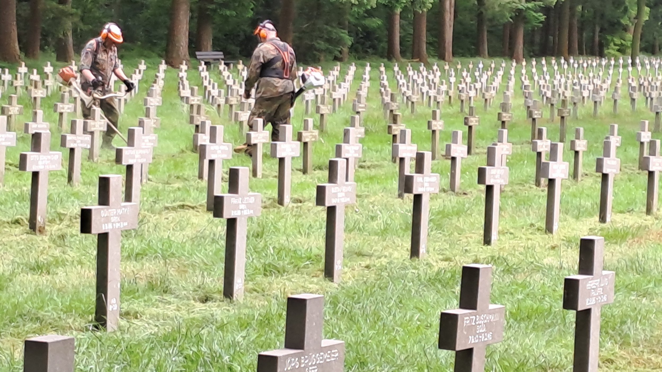 Es folgten gärtnerische Arbeiten sowie das Reinigen der Kreuze und der Kennzeichnungen der Grabsteine, damit die Schriften wieder erkennbar sind.