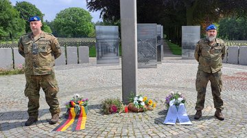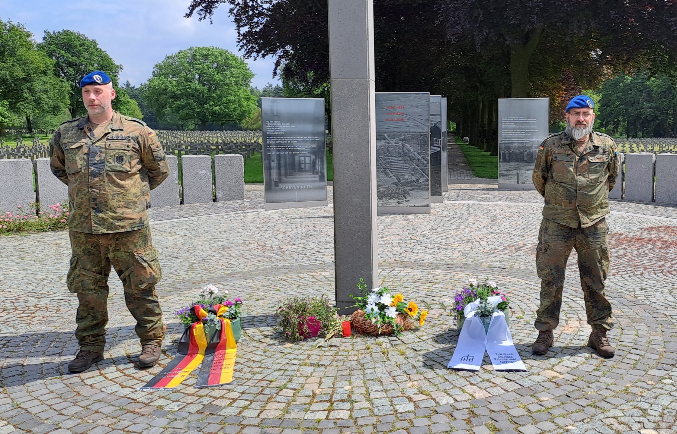 Am letzten Tag legte die Gruppe am Hochkreuz je eine Blumenschale des Reservistenverbandes, des Volksbundes und einiger Angehörigen nieder. Bevor die Reservisten sich auf dem Weg nach Ysselsteyn machten, haben sie in der lokalen Zeitung über ihre bevorstehende Reise berichtet und Angehörige gebeten, sich zu melden, damit auch von ihnen zum Gedenken etwas niedergelegt werden kann.